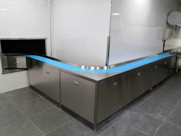·傳送機自動將餐盤傳入洗碗間,降低了操作人員的勞動強度。